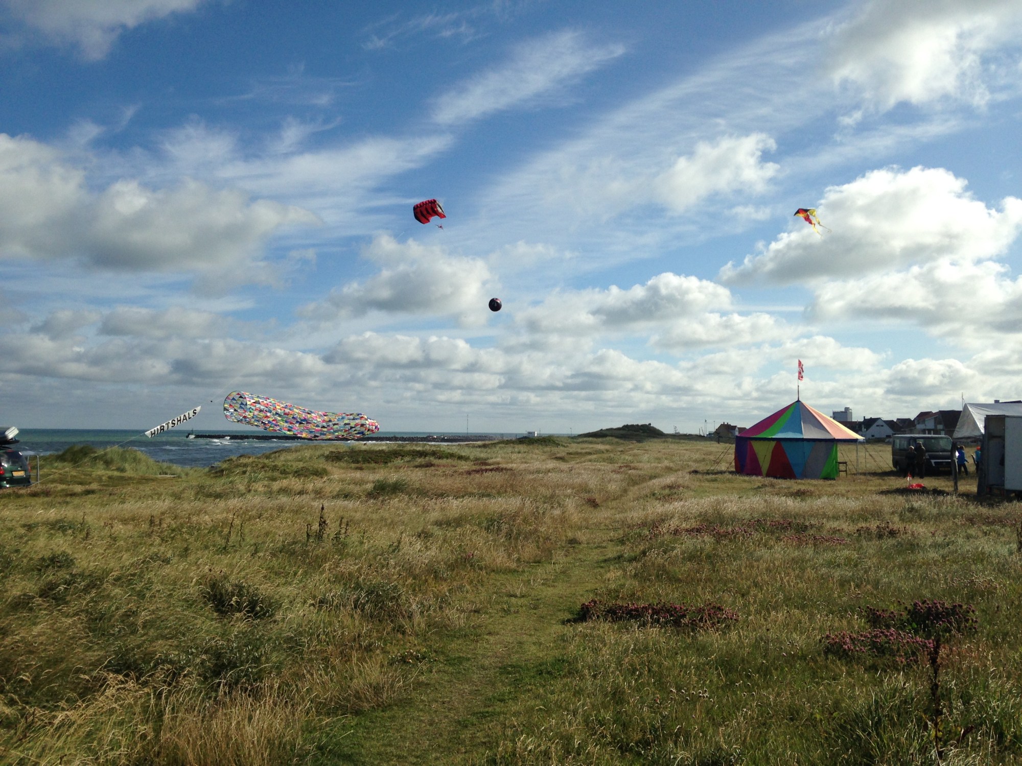 I had done it. I was in the right place at the right time. The ferry was two kilometers away; that is, my ride to Iceland was within walking distance. There was no reason I could foresee why I wouldn’t be on it at 15:30, pulling away from the continent of Europe, and cruising a north-by-northwestly route towards the Faroe Islands. I hadn’t blundered this one. It was a bright sunny day with high cirrus clouds spreading thin, feathered brush strokes across the blue skies. More tents had been set up for the Fiskefestival and a few kites were flying high near the beach.